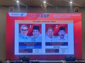 Hitung Cepat Rakata di Pilkada Lampung Timur 2024, Ella – Azwar Unggul 64,89 Persen dari Dawam – Ketut Adv, Aktual, Berita, Daerah, Lampung, Lampung Timur, Pemerintah, Politik, Sosial|November 27, 2024oleh Redaksi Bandar Lampung – Lembaga survei Rakata Analytic and Advisory menggelar hitung cepat