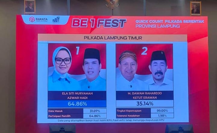 Hitung Cepat Rakata, Pasangan Ela-Azwar Klaim Unggul di Lampung Timur Adv, Aktual, Berita, Daerah, Iklan, Lampung, Lampung Timur, Nasional, Politik, Sosial|November 27, 2024oleh Redaksi Lampung Timur – Pasangan Ela Siti Nuryamah dan Azwar Hadi unggul dalam