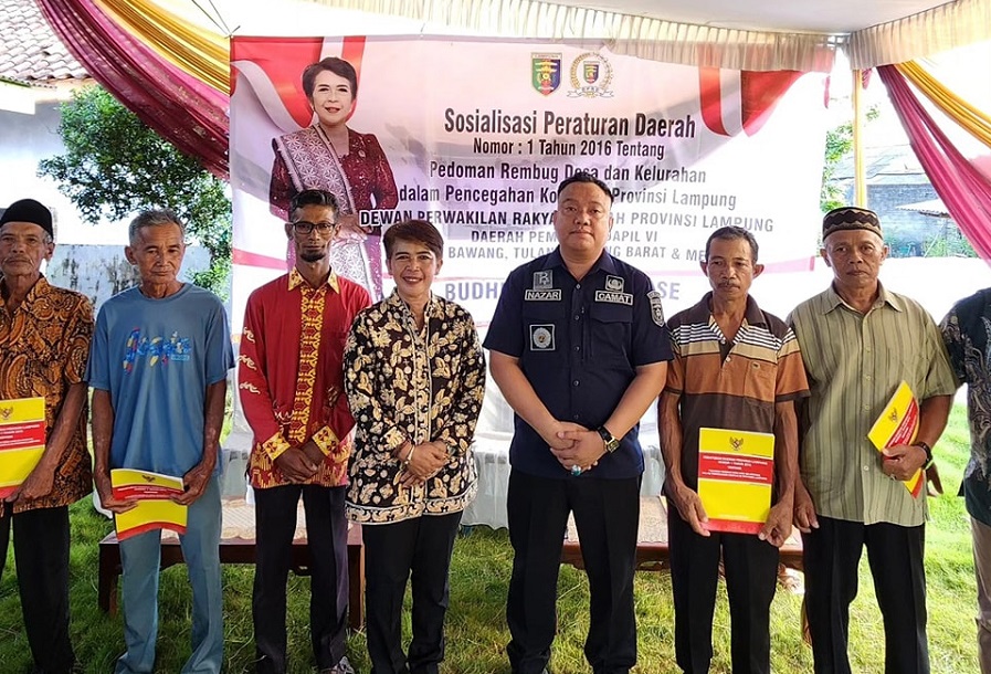 Tulang Bawang Barat – Anggota DPRD Provinsi Lampung Budhi Condrowati, S.E menggelar Sosialisasi Peraturan Daerah Provinsi Lampung Nomor 1 Tahun 2016 tentang Rembug Desa dan Kelurahan Dalam Pencegahan Konflik di Provinsi Lampung.