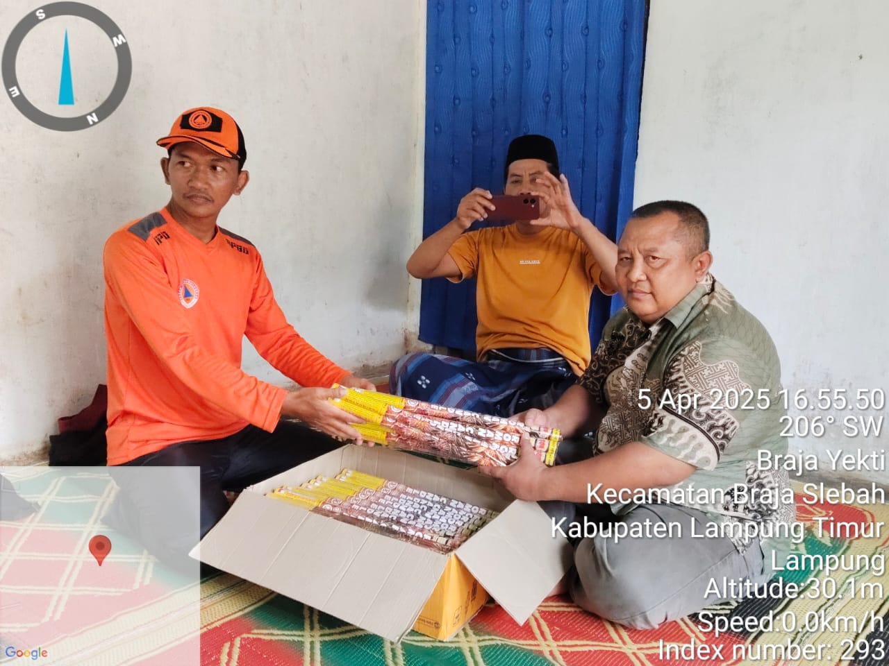 Bantuan berupa seratus buah petasan ini diserahkan oleh Anggota DPRD Fraksi PKB, Sunarno, petasan tersebut dikirim dari Badan Penanggulangan Bencana Daerah (BPBD) Lampung Timur kepada petani di Desa Braja Yekti, Kecamatan Braja Selebah. Petasan ini diharapkan dapat menjadi alat yang efektif untuk mengusir gajah liar yang sering merusak tanaman para petani.