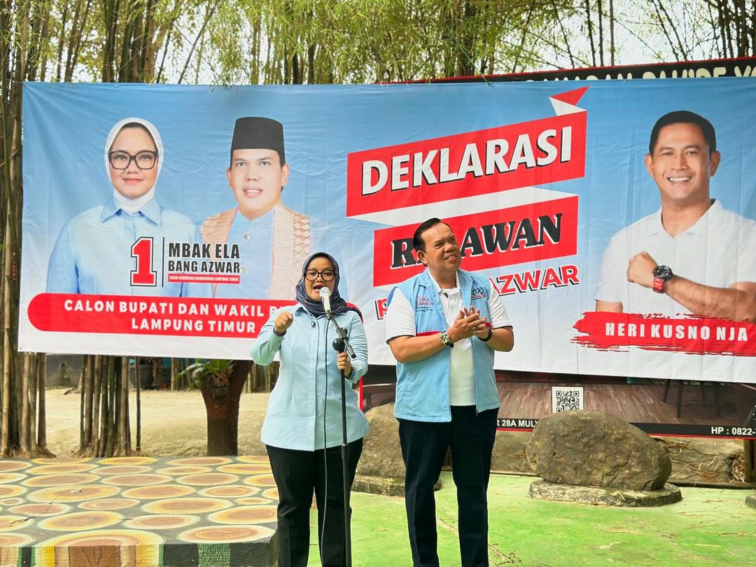 Hadir dalam deklarasi ini Ketua DPRD Lampung Timur, Rida Rotul Aliyah yang juga Ketua Tim Pemenangan Ela-Azwar, Wakil Ketua DPRD Ariyan Putra Marga,SE.M.M,dan Anggota DPRD Provinsi Lampung Sasa. (Red/Adv)