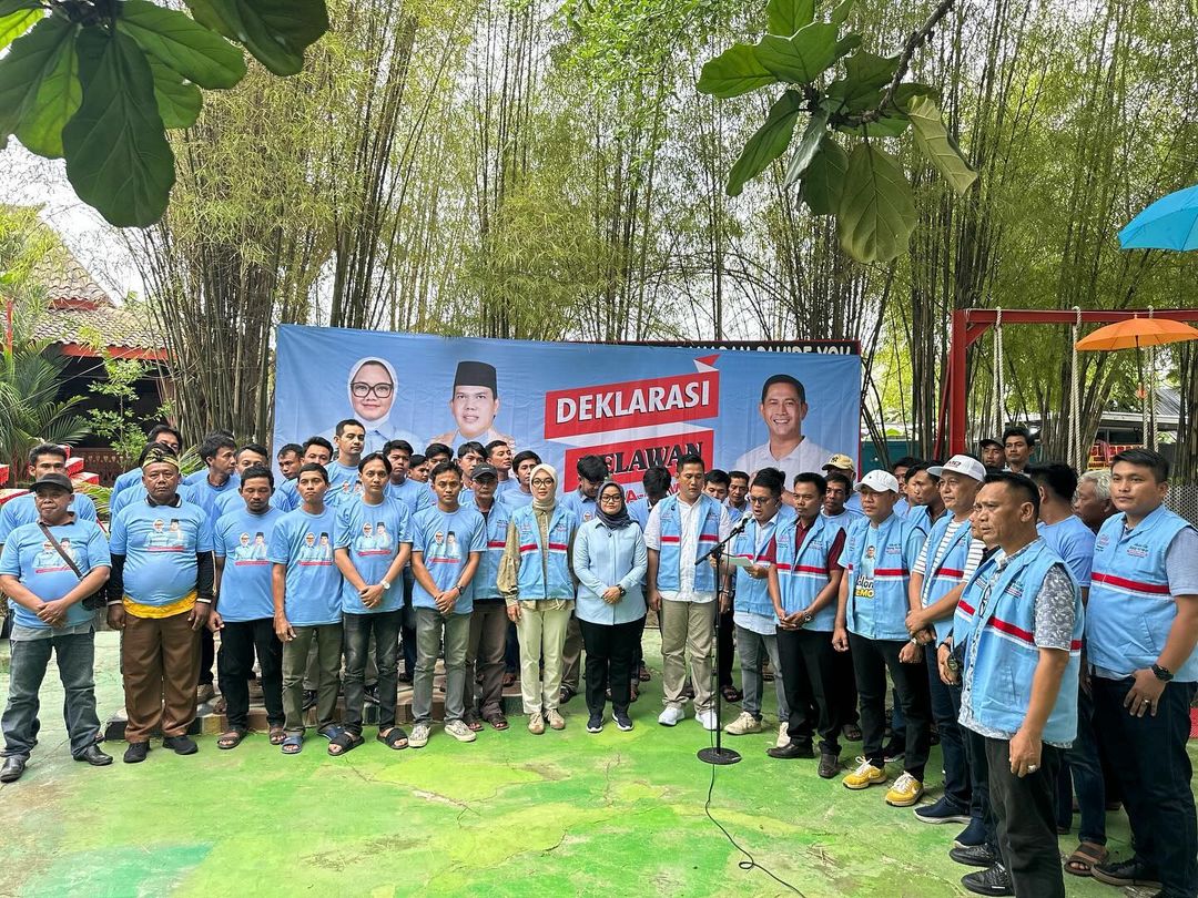 Lampung Timur – Ratusan Relawan Milenial Heri Kusno NJA Deklarasi mendukung Pasangan Calon Bupati dan Wakil Bupati Lampung Timur, Ela Siti Nuryamah dan Azwar Hadi di Pondok Daharan Pak’De Yok, diJalan Raflesia, Mulyojati, Metro Barat, Kota Metro, Sabtu (28/9/2024).